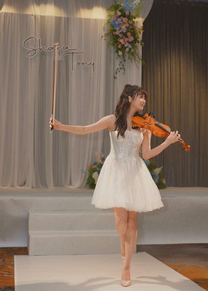 婚宴二進時,林逸欣以小提琴組曲展現音樂才華,曲目涵蓋古典與流行、東西方風格,包括《泰伊斯冥想曲》、《Tico Tico》、《Bad Guy》、《開到荼蘼》、《我還年輕 我還年輕》及《刻在我心底的名字》,宛如述說她的音樂與愛情旅程。演奏中,新郎貼心登台協助換裝,默契與甜蜜令全場沸騰。