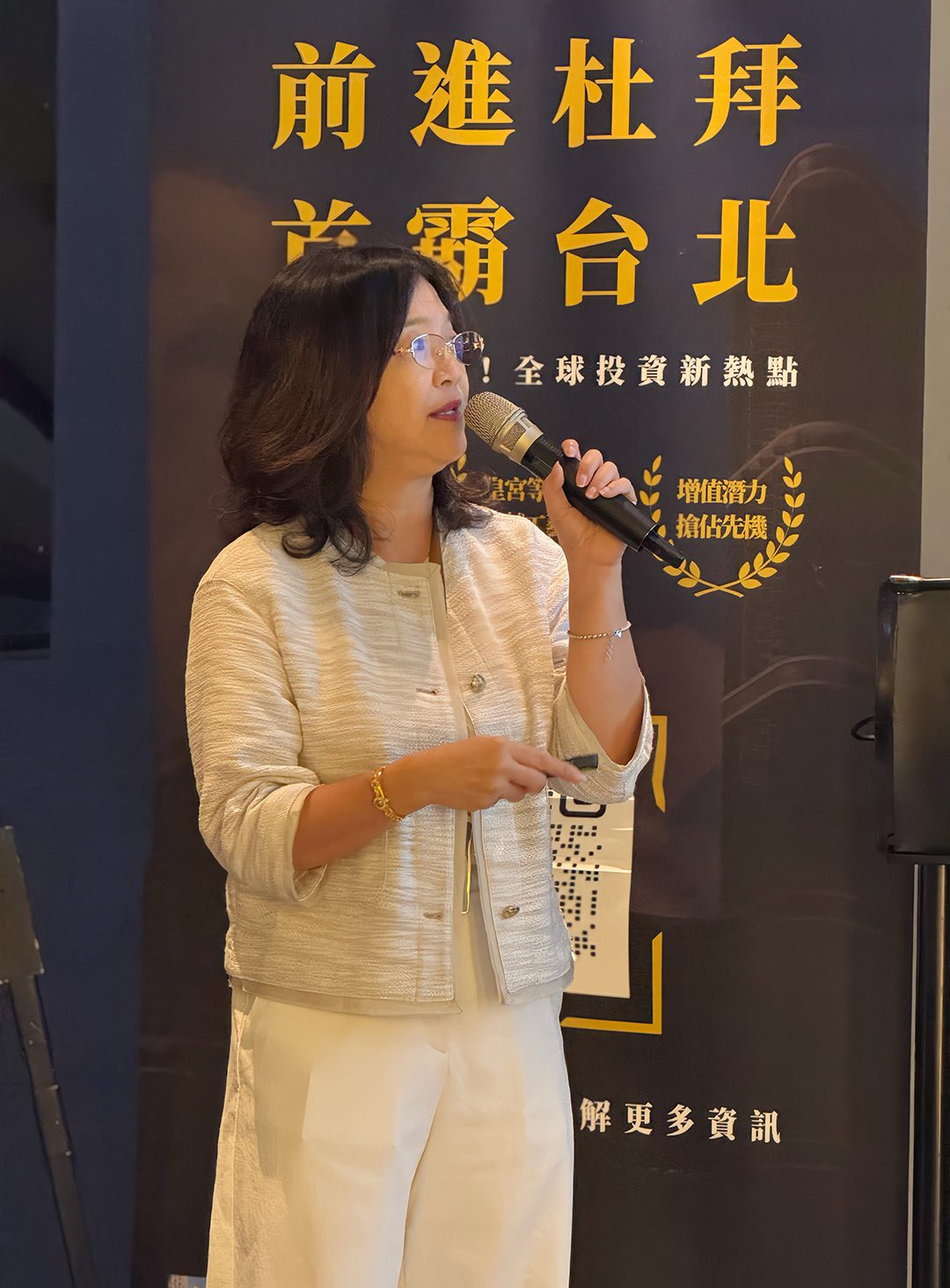▲元宇宙執行長陳行潔於說明會現場,深入剖析杜拜在地優勢與投資契機。(圖/元宇宙數位有限公司提供)